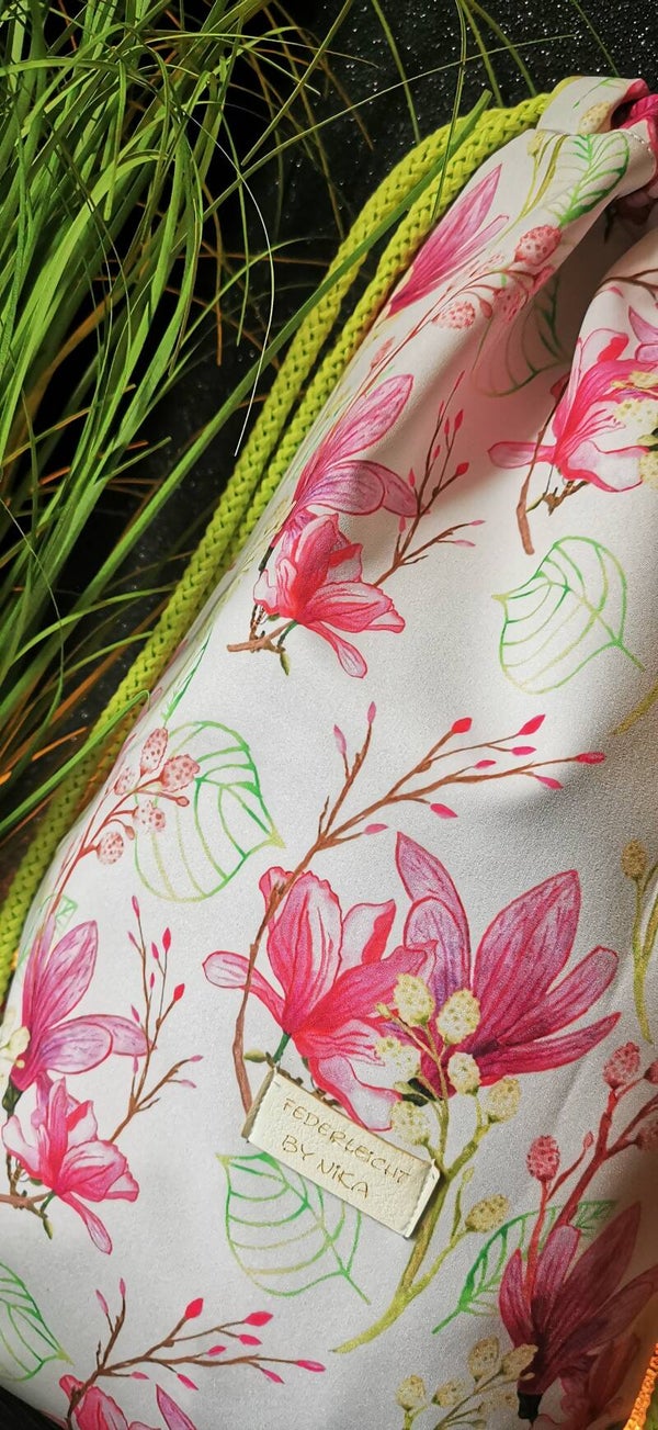 Softshellturnbeutel / Rucksack mit Magnolienmuster.